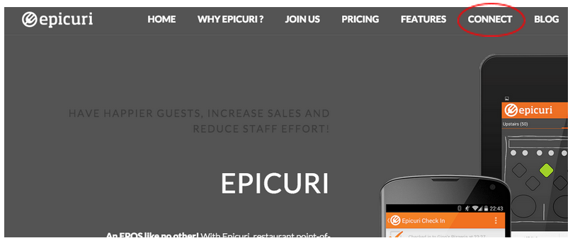 Step 1: www.epicuri.co.uk and click on Connect → Portal